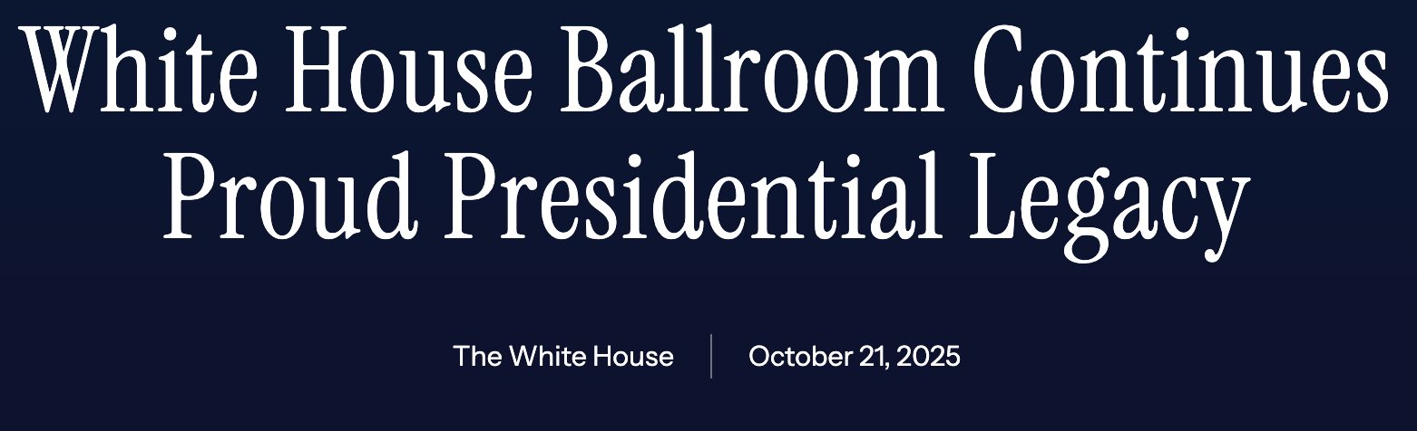 That is definitely not what the White House’s release read like on the current demolition of the East Wing to make space for Donald Trump’s physical manifestation of his own self-importance Ballroom (happening during a Federal Shutdown and giving serious Louis XVI vibes2, but the less said about the better).