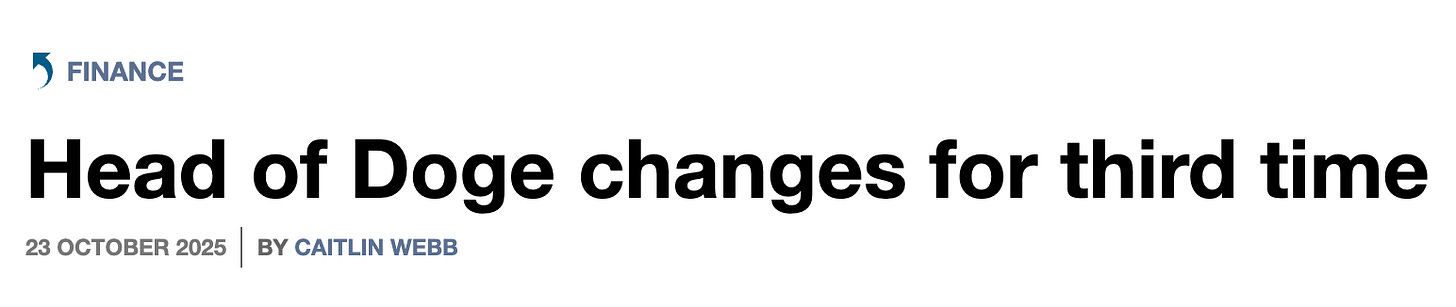 In what appears to be an active effort by Reform UK to parody itself, Richard Tice has now been installed as head of DOGE - an entity that can only be described as something cobbled together from a third-rate-think tank, a WhatsApp group and a power point deck5. While the “Department of Government Efficiency” sounds terribly official, it has absolutely no legal authority to “efficiency” anything and appears to spend most of its time issuing press releasing stories about “cutting waste” while achieving nothing more than just annoying local council workers.