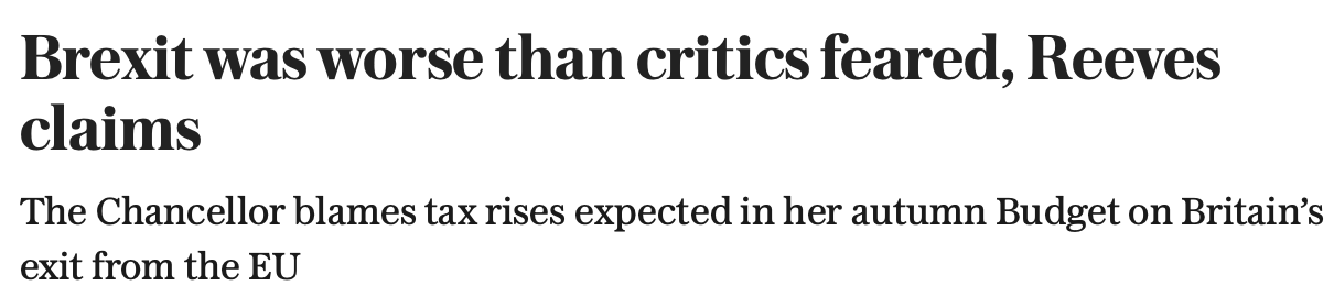 It’s been worse for growth, productivity and for the economy full stop. She’s also linked Brexit to what seems to be the now inevitable tax rises that we’re likely to see in the Autumn Budget, making this potentially the first time a sitting Chancellor has publicly admitted that the “sovereignty dividend” has turned out to be complete and utter nonsense.