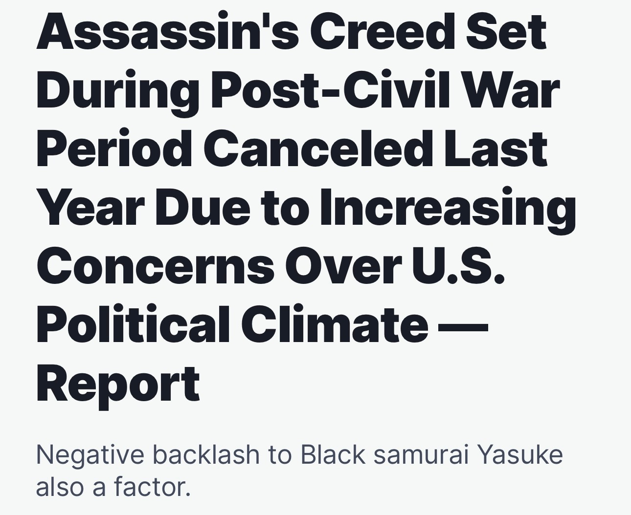 For non-gamer there are very few elements that show games are affected by the culture wars. When Ubisoft canceled the next Assassin’s Creed set in post–Civil War America, due to “fears about the current U.S. political climate”, only the gaming press reported it.