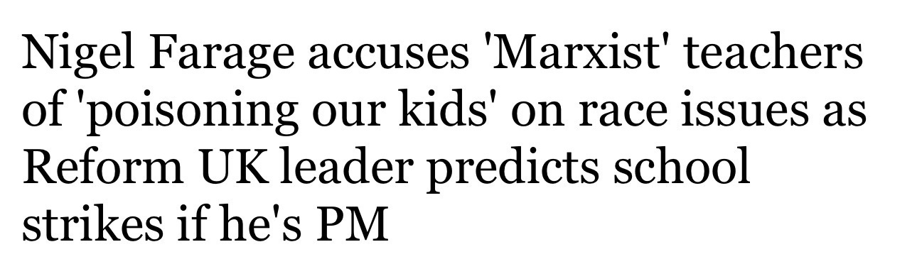 There is, of course, not a shred of evidence that teachers are secretly “Marxist” and what Nigel is truly having a fannywobble about is critical thinking - something that tends to make demagogues look a bit daft.