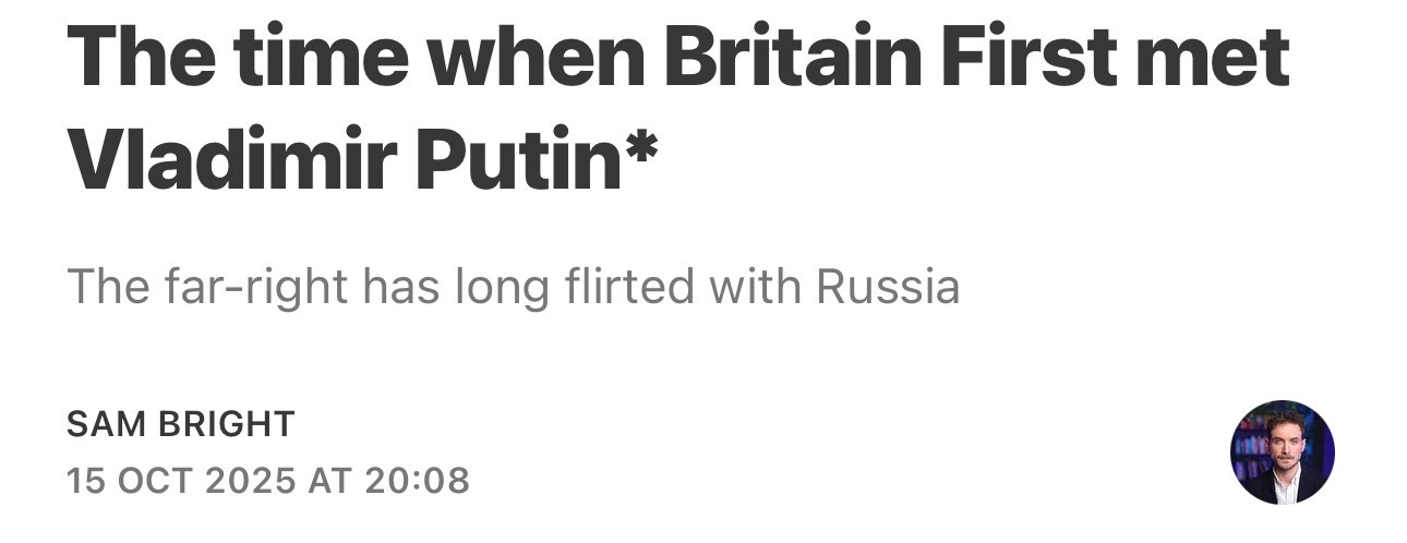 Nathan Gill’s admission that he took Russian bribes while serving as a Reform MEP is not an isolated scandal – it’s part of a broader pattern I began tracking years ago. Around the same time that Gill was accepting covert payments from Moscow-linked interests, Britain First leader Paul Golding was making repeated trips to Russia, posing with Vladimir Putin lookalikes (seriously) and praising the Russian president as a “strong leader” who embodied the “traditional values” that his movement idealised.