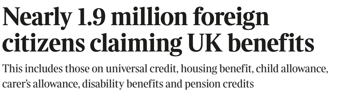 Shocking news from The Times came out this week - there are 1.9 million (million I say!) “foreign citizens” claiming benefits in the United Kingdom.